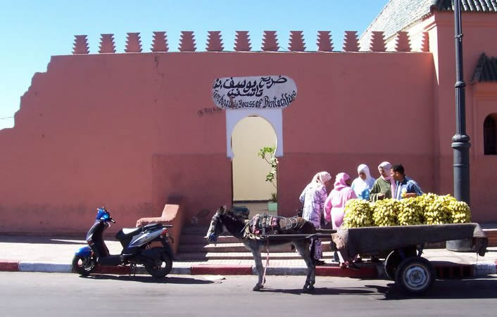 Le mausolée d’Ibn Tashafin se trouve actuellement à Marrakech non loin de la mosquée Koutoubia.
