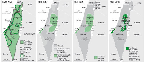 Située au Proche-Orient, la Palestine est un passage terrestre entre l’Europe, l’Asie et l’Afrique : un « couloir » pour les invasions. Une terre conquise successivement par les Égyptiens, les Philistins (qui ont donné le nom à la Palestine), puis les hébreux ( qui vont rentrer rapidement en guerre contre les Philistins). Suivrons les Babyloniens, les Macédoniens d’Alexandre le grand, les Romains, les Perses, les Arabes, les Ottomans. Et au 20ème siècle les Britanniques, qui ouvrent la voie d’un retour du peuple juif. Un lieu de passage pour les peuples mais aussi, une terre sainte, une terre des prophètes des trois grandes religions monothéistes.